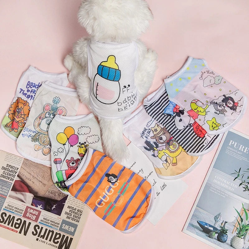 1 PC Lightweight Summer Vest for Pets Chihauhua XS-XXL Big Dogs Clothing Ice Felt Overall Cartoon No Fading Pet Cat Overalls