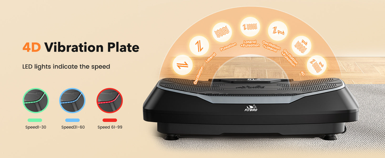 4D Vibration Plate-Triple Motors Oscillation, Linear, Pulsation Vibration Plate Exercise Machine, 30Hz-40Hz Vibration Plate Exercise Machine for Bone Density Building & Lymphatic Drainage