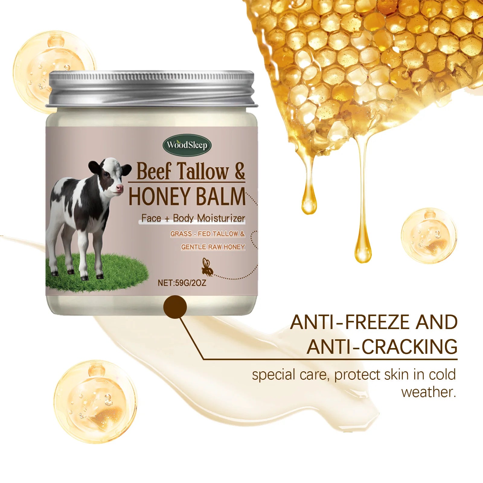 Organic Beef Tallow Honey Moisturizer Grass Fed Beef Tallow Face Cream Soothing Firm Increase Elasticity Whipped Smooth Lotion