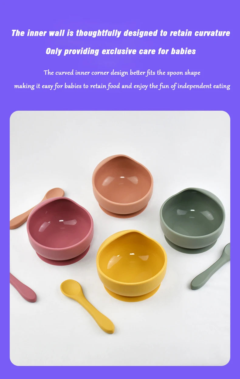 Silicone Baby Bowl Self feeding Training Snail Bowl Infant Anti Drop Sucker Set With Spoon Set Children's Feeding Tableware